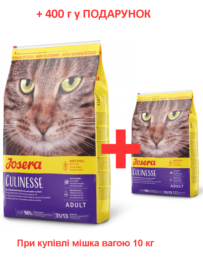 АКЦІЯ!!!Купуючи сухий корм Josera Culinesse вагою 10 кг, отримайте в ПОДАРУНОК ще 0.4 кг такого ж корму.