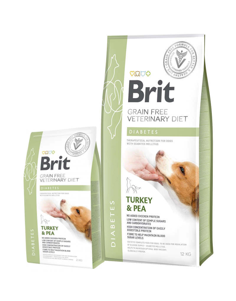 Дієтичний повноцінний і збалансований корм для контролю за рівнем глюкози при діабеті у собак. Brit GF VetDiets Dog Diabetes - це нова, розроблена кращими технологами та ветеринарами Чехії, беззернова дієта для здоров'я Ваших улюбленців. До складу корму входить легкозасвоюване м'ясо індички і горох, який є відмінним джерелом вуглеводів, клітковини, білка і багатьох вітамінів і мінералів. Вони забезпечують організм незамінними амінокислотами які так необхідні собакам для щасливого і довгого життя.