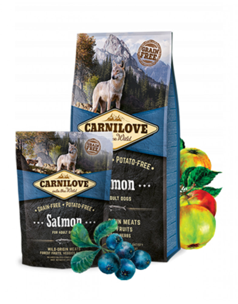 Carnilove Adult Salmon - повнораціонний збалансований беззерновой сухий корм для дорослих собак всіх порід. У складі продукту знаходиться лосось, який є прекрасним джерелом легкозасвоюваних білків, володіє протизапальними властивостями і допомагає запобігти різним захворювань очей у тварин. Лосось багатий поліненасиченими жирними кислотами Омега-3 і Омега-6, які надають позитивний вплив на розвиток серцево-судинної системи та обміну речовин (знижують рівень цукру в крові), а також покращують якість і зовнішній вигляд шкіри і шерсті.