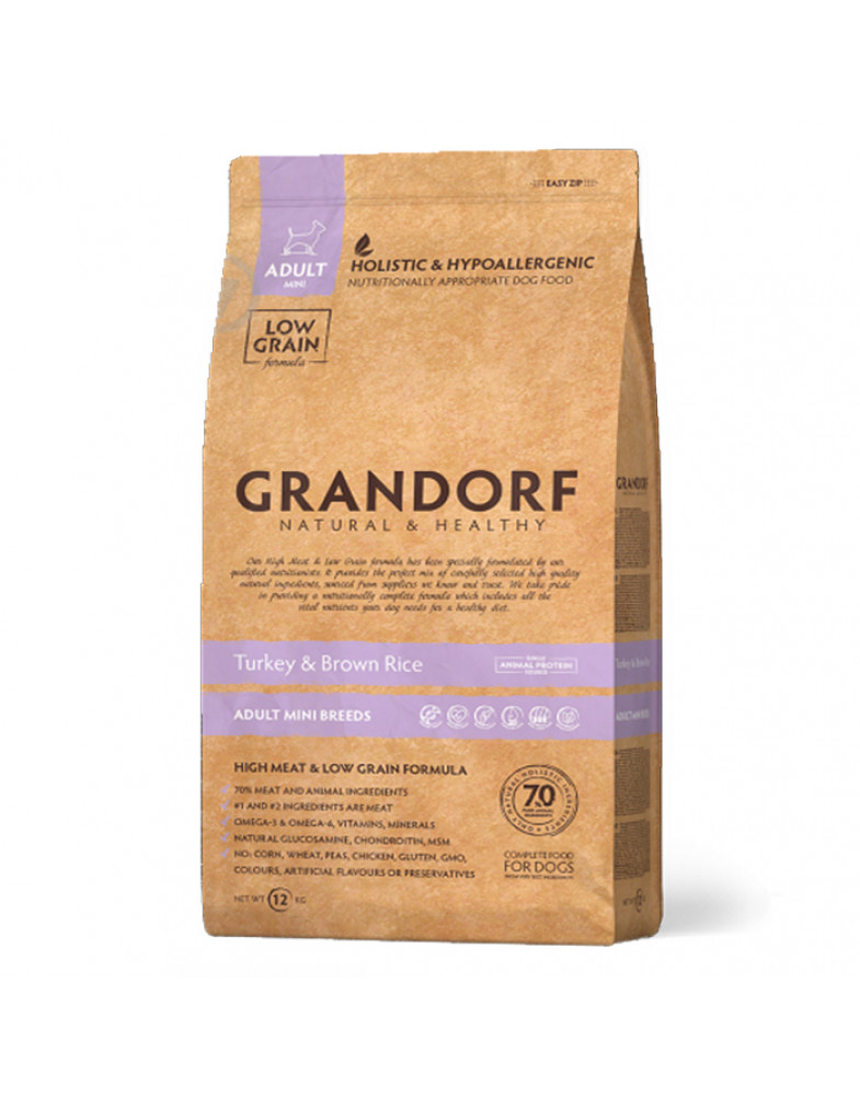 Grandorf Turkey and Brown Rice Adult Mini Breeds - Сухий корм для дорослих собак дрібних порід з індичкою та бурим рисом