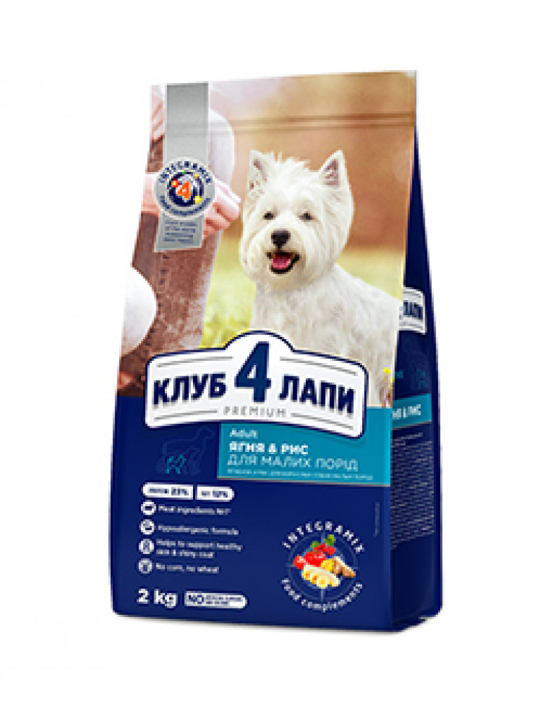 Клуб 4 лапи Premium Adult Small Breeds Lamb & Rice для дорослих собак малих порід з ягням і рисом
